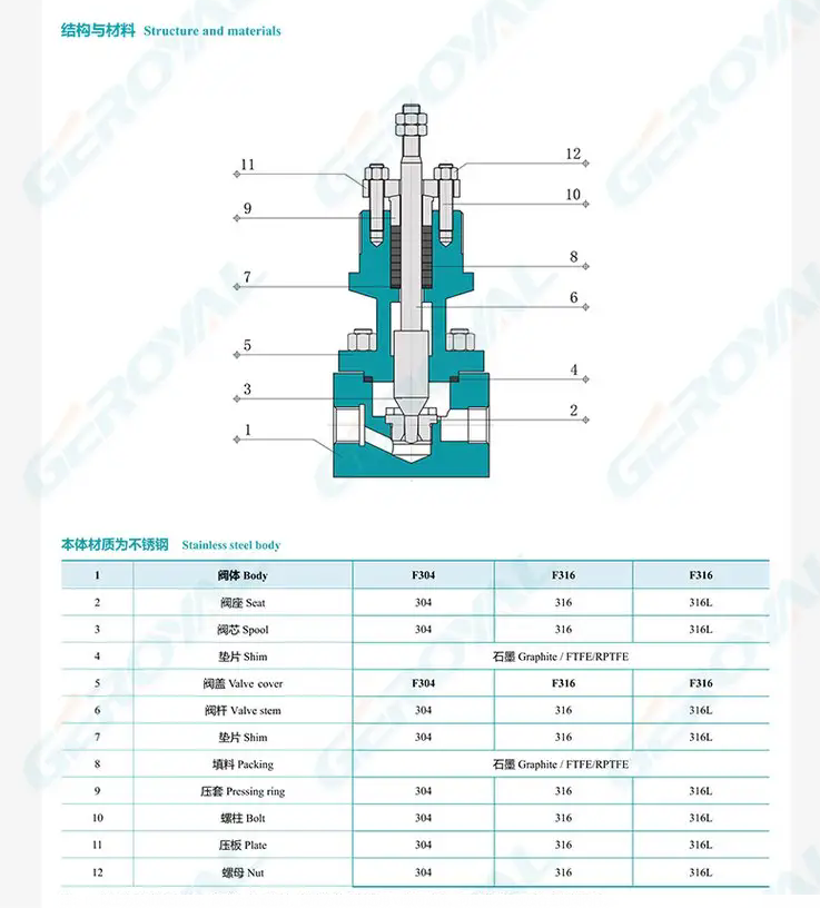 進口氣動小流量調節閥零件材料
