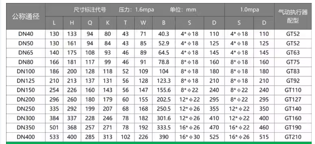 1. 公稱通徑:DN40 - DN1200 。
