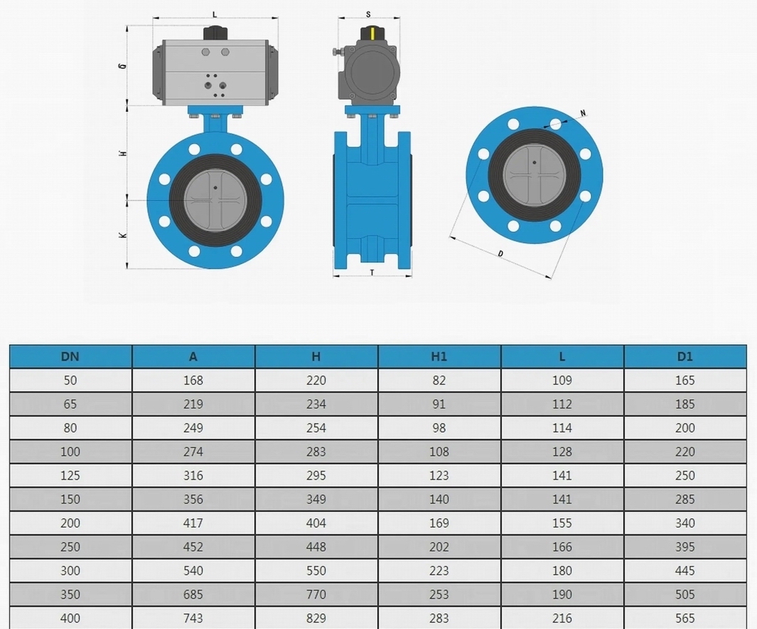 進(jìn)口氣動中線法蘭蝶閥尺寸參數(shù)
